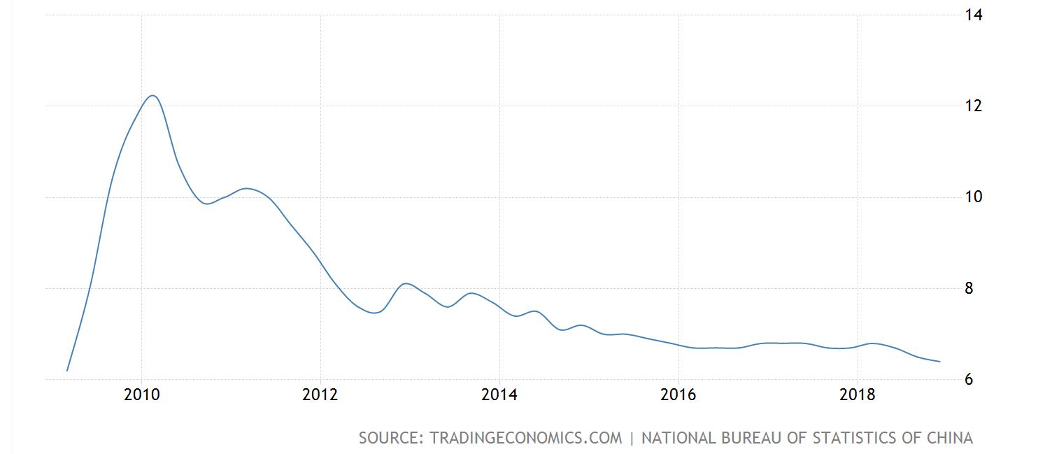 وفقا لآخر توقعات منظمة التعاون الاقتصادي والتنمية ، فإن النمو الاقتصادي في الاقتصادات الرئيسية في العالم سوف يتباطأ. يظهر ذلك واضحا بعد ان صرحة الصين بوصولها الى اقل نسبة نمو منذ اكثر من 9 سنوات، ولعله بعد وصول ترمب زادت الطين بله على الصين في تعميق البطء الاقتصادي (انظر الشكل بالسفل)، ايضا من المتوقع أن يتوسع الناتج المحلي الإجمالي العالمي بنسبة 3.5٪ في 2019 مقارنة بـ 3.7٪ في 2018.