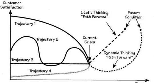 نحن نعيش في وضع عدم التوازن (nonequilibrium) وهوعالم لا رجعة فيه ابدا. الوقت له دلالات اكبر من الفترات الفاصلة التي انقضت بين لحظات أو مراحل مختلفة لبعض العمليات المدروسة. الوقت له الاتجاه ، من الماضي نحو الحاضر ومن الحاضر نحو المستقبل. قد نقول أن العمليات الحقيقية لها تموضع أو اتجاه في الزمن. يمكن قياس اللارجعة في عالمنا باستخدام الإنتروبيا (entropy) بالمعنى الواسع ، وهو مفهوم تم إدخاله أولاً في الديناميكا الحرارية ثم تم تعميمه في العديد من المجالات الأخرى للعلوم والهندسة. في الواقع ، فإن الإنتروبي يقيس درجة اللارجعة لعملية معينة وليس عدم قابليتها النهائية. وبما أن اللارجعة تولد نوعًا من تاريخ تطور العمليات المختلفة ، يقول العلماء إن الإنتروبيا تكشف عن نوع من الاتجاه الزمني. ويوضح اتجاه التنمية المستقبلية. بما أن العمليات الحقيقية لا يمكن عكسها وتتطور في بيئات غير متوازنة (nonequilibrium)، علينا تطوير نماذج تفكير قادرة على إفهمنا لهذه العمليات الحقيقية. تحتوي هذه النماذج على محور زمني موجه وقابل للقياس ، وهذه “حقيقة قد نطلق عليها نماذج التفكير الديناميكية “الانتروبية.